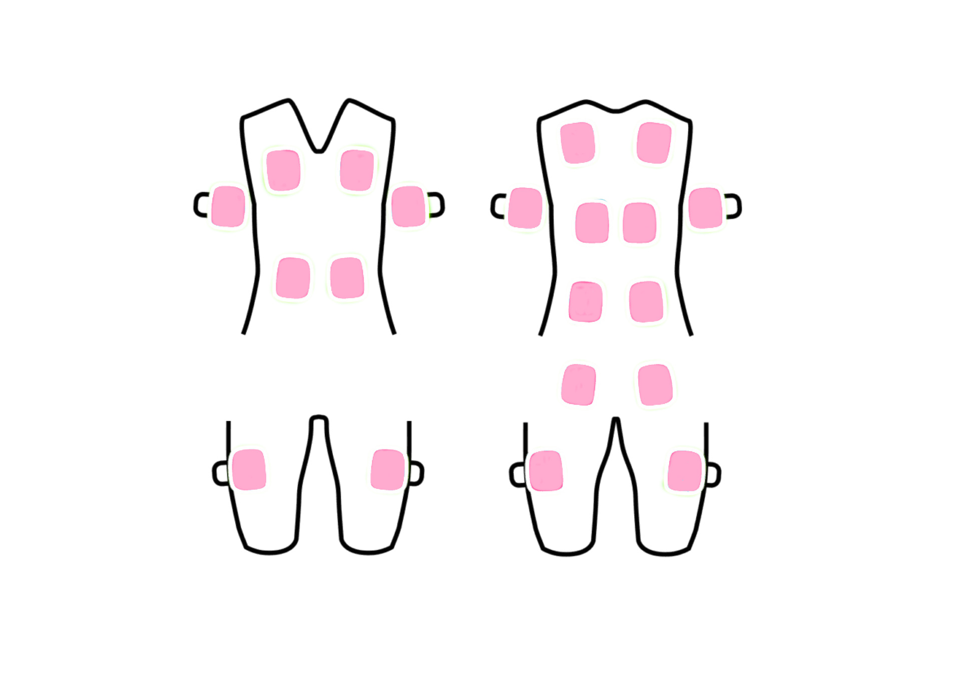 Den ergonomiska och flexibla designen anpassar sig naturligt efter kroppens form och ger full rörelsefrihet under behandlingen. Genom integrerade elektroder stimuleras ett stort antal muskler samtidigt — även djupare muskelgrupper som ofta är svåra att nå genom traditionell träning.