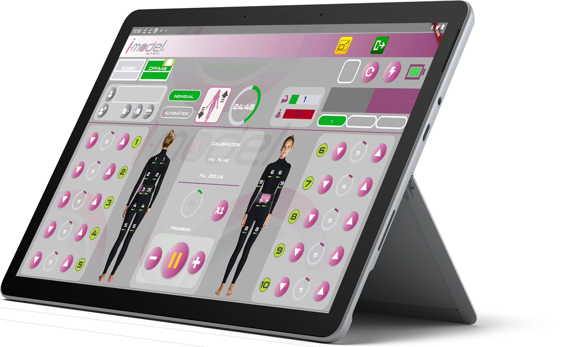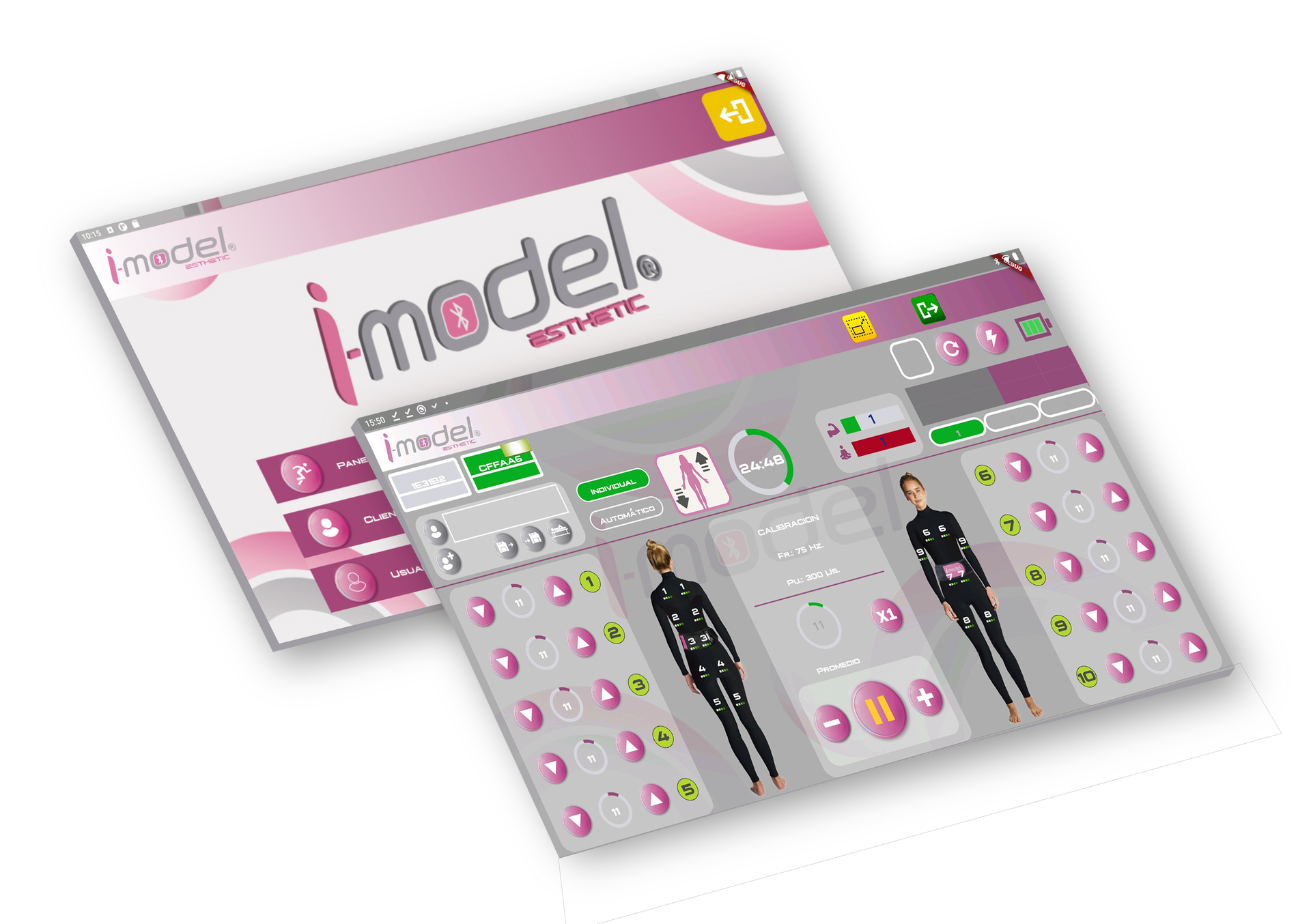 I-Model Esthetic erbjuder ett brett urval av specialutvecklade program som anpassas efter olika estetiska och kroppsliga behov. Systemet innehåller 12 individuella program och 6 förinställda automatiska program, med möjlighet att även skapa personligt anpassade program.